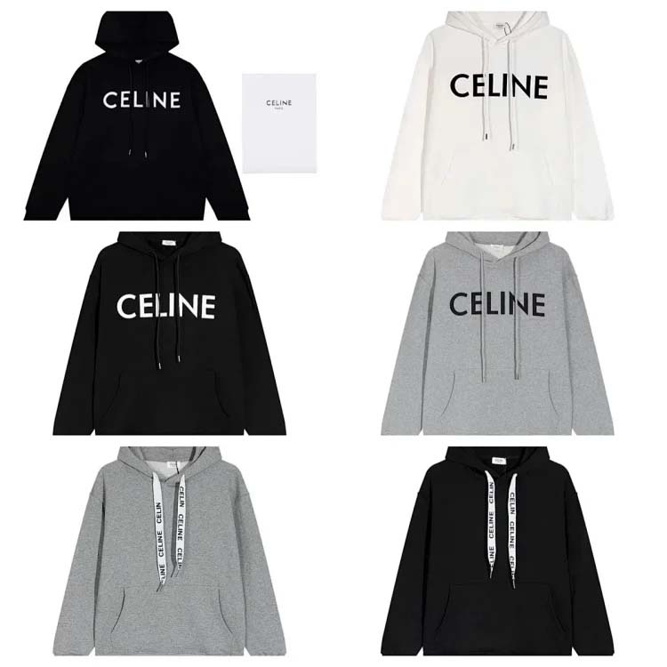 Home > CELINE Simple letter print hooded sweatshirt loose top-2135